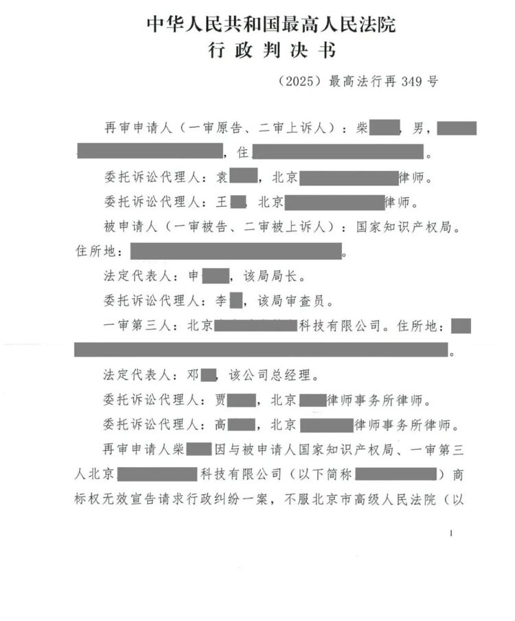 柴某不服国家知识产权局维持诉争商标注册的裁定,提起诉讼。在经历一审、二审败诉后,向最高人民法院申请再审。最高人民法院于2025年6月27日裁定提审本案。