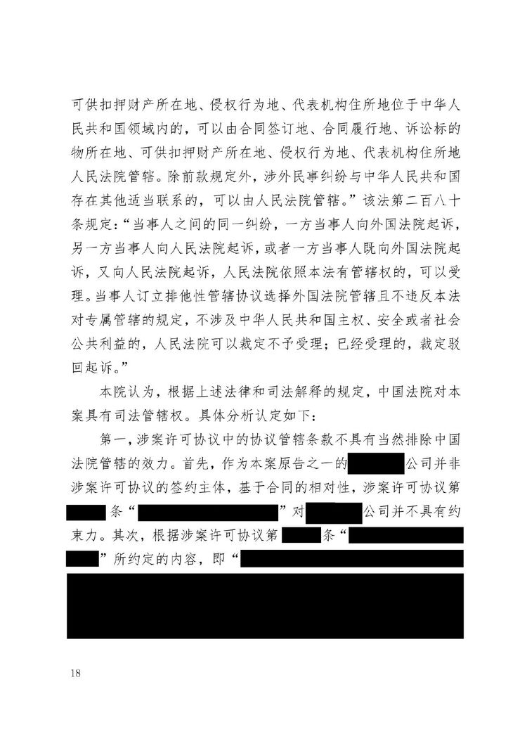 第三,无论本案定性为侵权或合同纠纷,中国法院均有管辖权。侵权方面,原告住所地即侵权结果发生地位于中国。合同方面,涉案专利清单包含大量涉及中国授予的标准必要专利,部分诉讼标的物所在地位于中国境内;且作为被许可方的原告住所地及合同履行地均在中国。依据《民事诉讼法》第二百七十六条,上述连结点均支持中国法院行使管辖权。