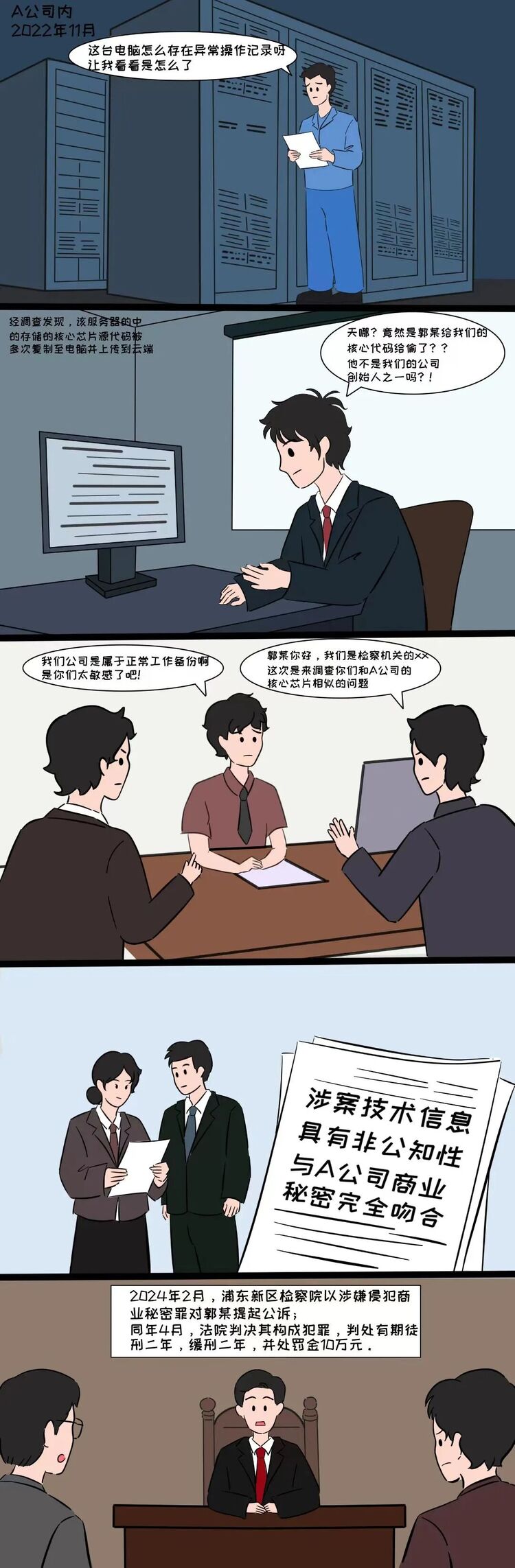 2024年2月,浦东新区检察院以涉嫌侵犯商业秘密罪对郭某提起公诉。同年4月,法院作出判决:郭某构成侵犯商业秘密罪,判处有期徒刑二年,缓刑二年,并处罚金10万元。
