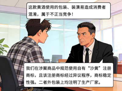 2012年2月,另一酒类制造公司金沙公司(化名)经核准注册“沙黄”文字商标,核定使用商品类别为黄酒、米酒、料酒等。在“沙黄”商标注册阶段,张家港酿酒公司曾提出异议,但被国家知识产权局驳回异议、准予注册。