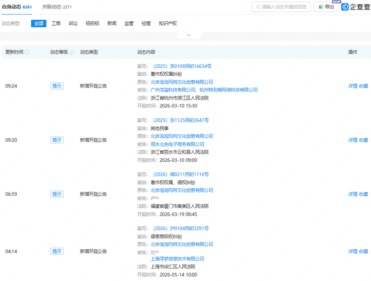 3月3日一早,中国城市报搜索发现,泡泡玛特此前诉讼案件新增多个开庭公告,其中相关案由多为“著作权权属、侵权纠纷”。