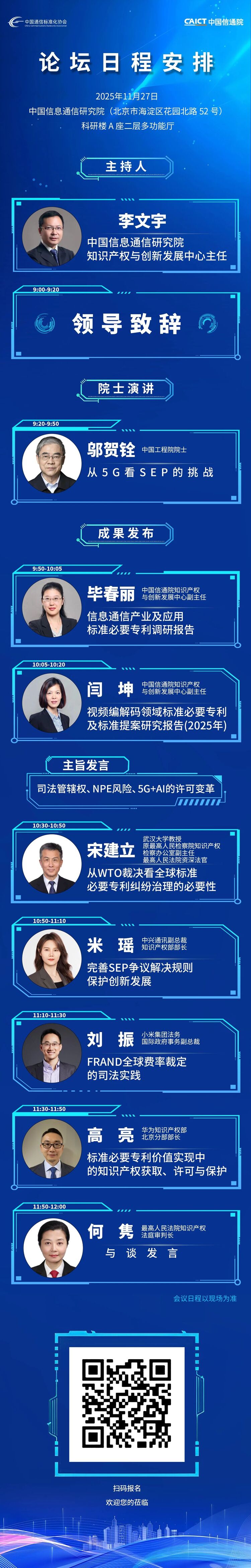 2025中国信通院标准必要专利大会即将举办(北京)。