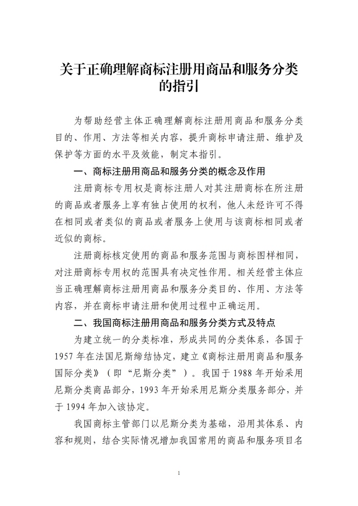 为深入贯彻落实《“十四五”国家知识产权保护和运用规划》关于加强知识产权源头保护,强化知识产权申请注册质量监管的部署,帮助经营主体正确理解和运用商标注册用商品和服务分类,提升商标申请注册、维护及保护等方面的水平及效能,国家知识产权局组织编写了《关于正确理解商标注册用商品和服务分类的指引》,供相关经营主体参考使用。