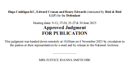 Joanna Smith法官裁定Getty在Stable Diffusion用户生成带有Getty水印的图像所涉及的商标侵权问题上取得"部分"胜诉,但强调其裁决结论"既具历史性,适用范围又极其有限"。