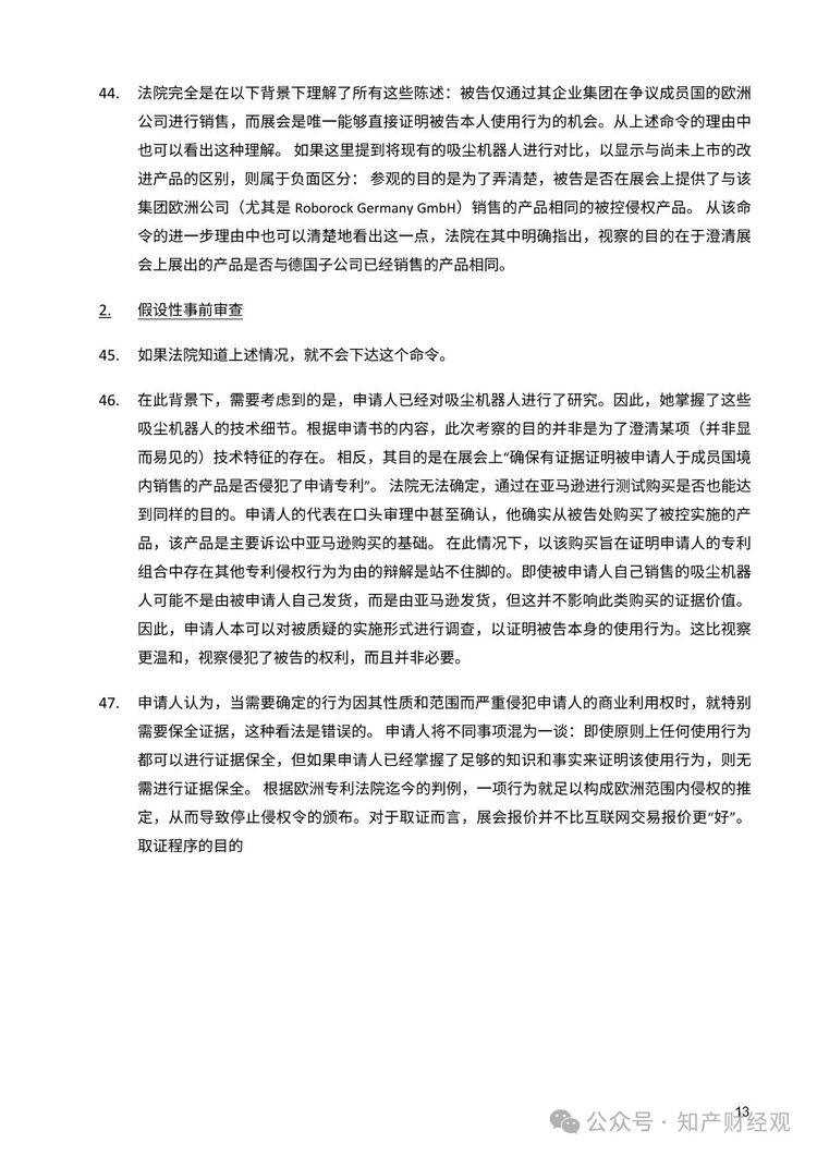 所谓单方命令,是指法院在未通知、未听取对方当事人意见的情况下,应权利人申请直接作出的临时性司法措施,常见类型包括证据保全、现场检查、临时禁令等。在本案中,争议的单方命令系用于在德国柏林举办的IFA展会期间,对石头科技展出的相关产品实施现场检查并进行证据保全。