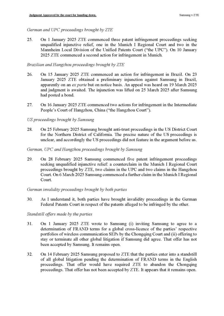 2024年12月19日,三星在英国提起诉讼,寻求FRAND费率裁定及专利侵权救济。