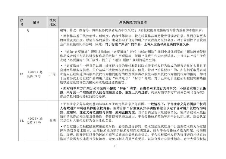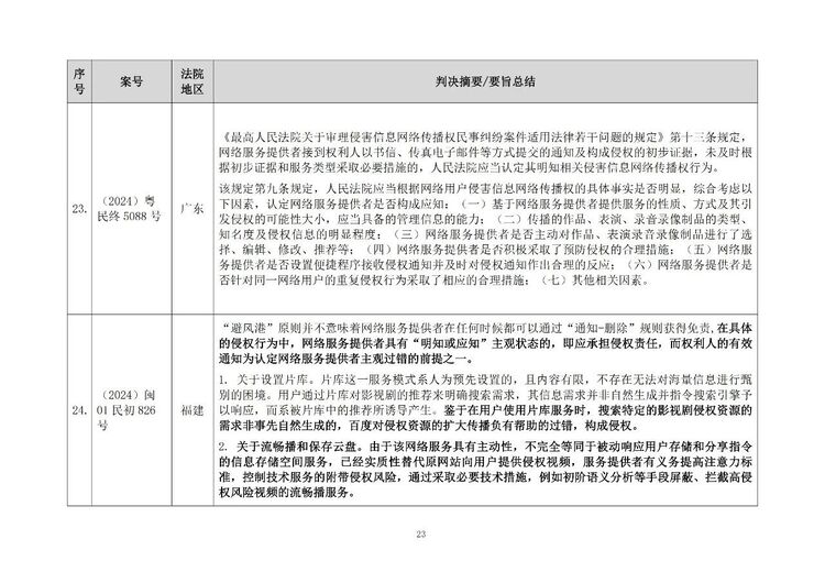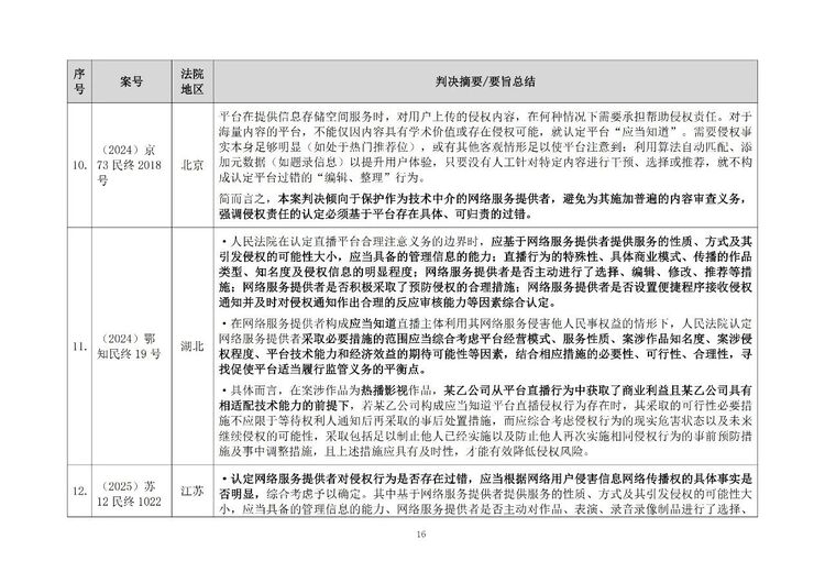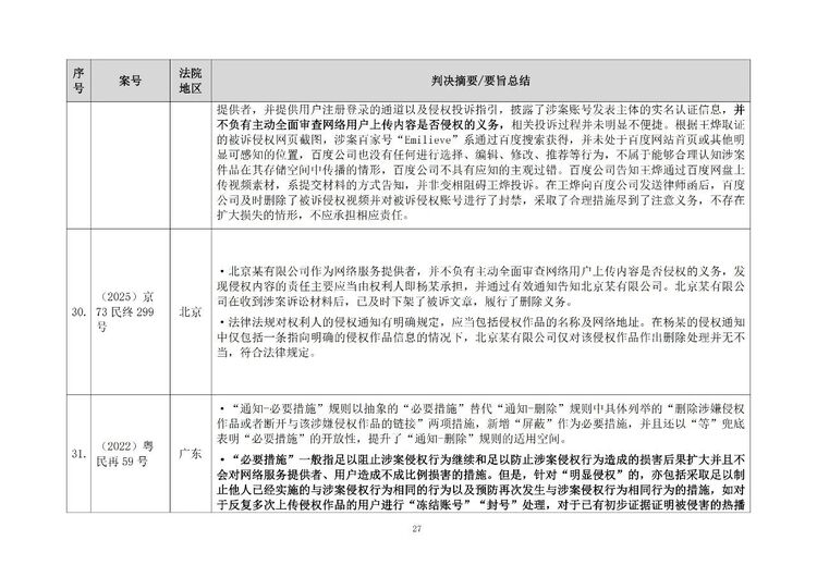 从这次收集的典型案例来看,各法院已基本形成共识:网络服务提供者对侵权行为不负有一般性审查义务。