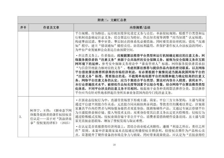 这30份文书虽然不能反映全国审判情况,但由于这些案例来源于北京、上海、浙江、江苏、广东、湖北、重庆、福建等网络著作权案件较为集中且审判水平较高的法院辖区,可以说具有一定的代表性和权威性。除判决文书外,本观察还涵盖了12篇国内学者相关论文,最终选择3篇具有理论创新价值的学术文献纳入观察范围。
