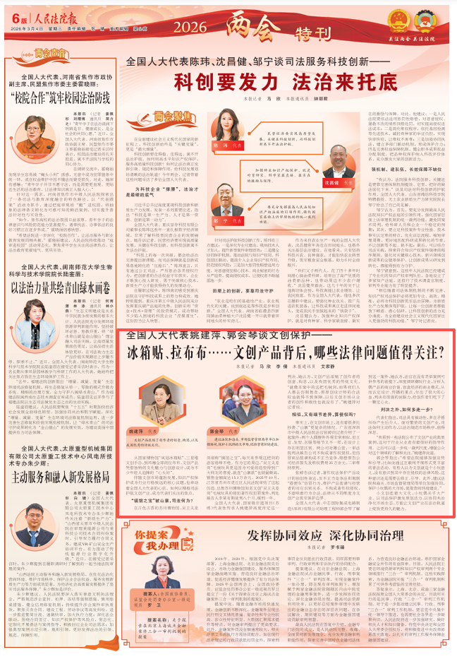 伴随文创市场蓬勃发展,知识产权保护成为行业行稳致远的核心议题,也牵动着全国人大代表的心弦。如何以精准司法护航文创产业,成为代表们关注的焦点。