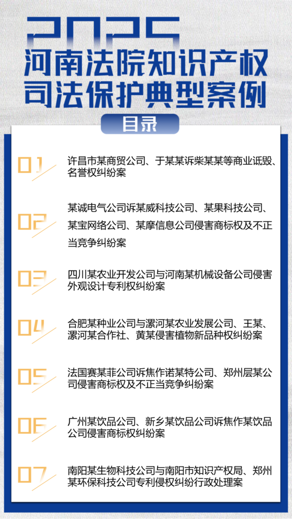 以典型案例引领司法实践,以精准裁判服务创新大局。为持续提升全省知识产权司法保护质效,突出司法裁判对知识产权保护的示范、引领作用,河南省高级人民法院从全省法院2025年度办结的知识产权案件中评选出7件典型案例,现予公布。