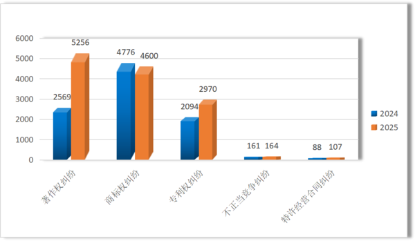 图3 2025年与2024年受理知识产权民事案件数量对比