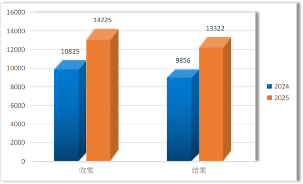 图1 2025年与2024年知识产权案件收结数量对比