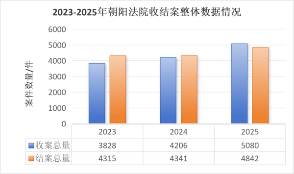 2023-2025年,朝阳法院审结知识产权案件分别为4315件、4341件、4842件,三年总计13498件,结收比为102.93%。