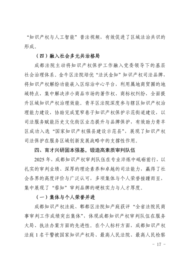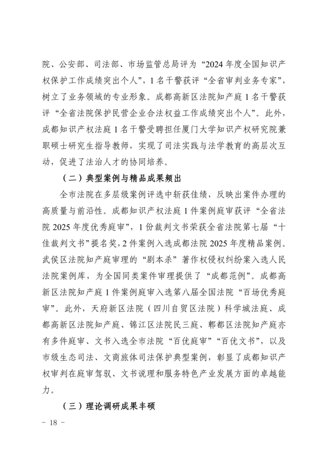 《成都法院2025年知识产权司法保护状况》白皮书