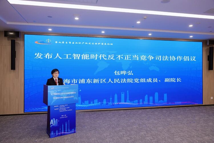 会上,上海市浦东新区人民法院党组成员、副院长包晔弘发布《人工智能时代反不正当竞争司法协作倡议》,上海市浦东新区人民法院、天津市滨海新区人民法院、江苏省苏州高新技术产业开发区(苏州市虎丘区)人民法院、浙江省义乌市人民法院、广东省深圳前海合作区人民法院、广东省横琴粤澳深度合作区人民法院、四川省成都高新技术产业开发区人民法院共同倡议建立跨域协作机制、案件研商机制、执行联动机制、交流研讨机制、联合调研机制、信息互通机制、资源共享机制、人才共育机制,以更高站位、更实举措、更优服务,为人工智能高质量发展提供公正、高效的司法保障。