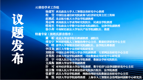 在议题发布环节,来自全国多所知名高校、科研院所的专家学者分别就智能体的行为边界、授权机制与竞争治理,人工智能拟人化互动的法律风险及回应,生成式人工智能幻觉致损风险防范与责任承担,人工智能时代个人信息保护制度的结构性冲突与制度调适,人机协同场景下知识产权等权属与利益分配规则,前沿人工智能安全保障与极端风险防控的法治进路,人工智能产业政策的法治调控,人工智能企业出海的法律问题,人工智能技术标准、伦理准则与法律规则的体系协调,以及人工智能法律治理的新型工具等十项议题进行逐一发布,深度解读各议题核心内涵、研究价值与破题方向。