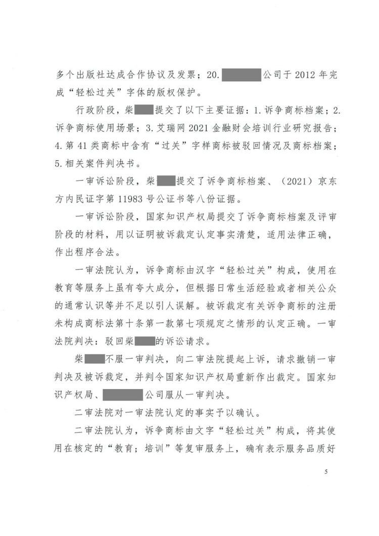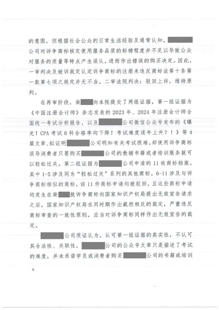 再审中,柴某提交的考试通过率报告及北京某科技公司自宣文章等证据显示,相关考试难度大,而“轻松过关”商标易对消费者购买决策产生实质性影响。