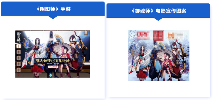 其次,《御魂师》电影会造成消费者误认电影与案涉游戏之间存在关联关系。被告抗辩“御魂师”属于公有领域的词汇,经当庭通过百度搜索“御魂师”,前五页中仅有极少部分链接与《阴阳师》游戏无关,在案证据亦可证明众多游戏玩家将“阴阳师”等同于“御魂师”,可见“御魂师”与《阴阳师》游戏已存在相对稳定的联系。虽然案涉电影原名全称为《御魂师之封神令》,但其中“御魂师”三个字与《阴阳师》手游字体排版相近,且“御魂师”字体远大于“封神令”,突出使用“御魂师”的行为会具有让人误认电影与游戏之间存在关联关系的混淆可能性。在已经因电影标题相似可能造成部分玩家混淆的情况下,案涉电影利用相关游戏知名元素的行为会进一步加剧这种混淆可能。经对比游戏中部分元素与案涉电影的人物形象,比如“安倍晴明”“神乐”等,后者在整体造型、色彩搭配以及诸多局部细节特征上,均与前者具有感官上的相似性。这种相似虽不足以构成著作权法意义上的侵权,但会让人在观看电影时联想到《阴阳师》手游,并因电影名称的相似,从而在整体上加剧混淆可能。