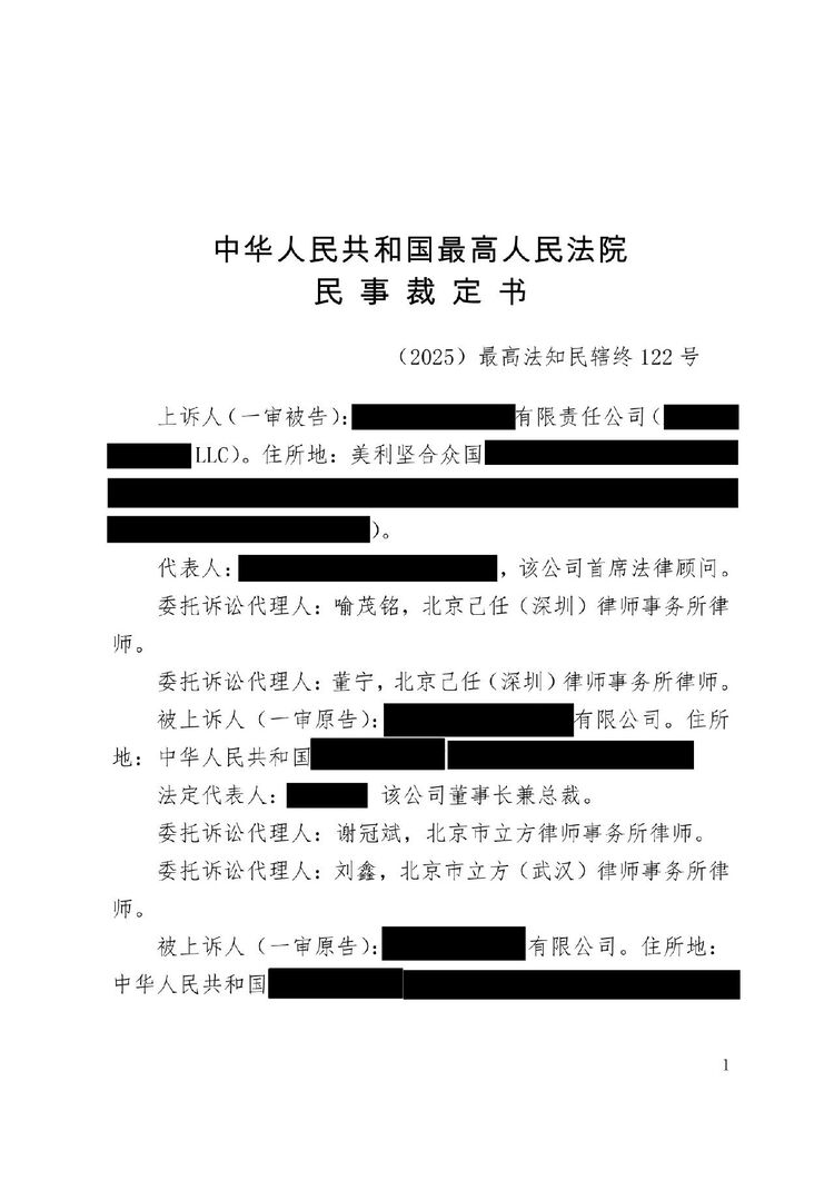 知产财经获悉,近日,最高人民法院就上诉人美国某有限责任公司(简称“美国LLC”)与被上诉方中国A公司、中国B公司滥用市场支配地位纠纷管辖权异议一案作出终审裁定:驳回上诉,维持原裁定,确认中国法院对本案具有管辖权。