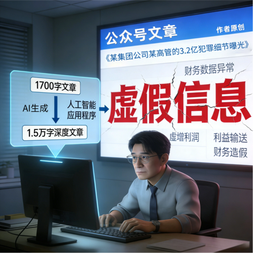 2025年8月,曹某将一篇1700字的文档输入某生成式AI应用程序,该文档内含有某集团公司某高管的职务犯罪案细节,包括以进口补贴套取财政资金、通过关联交易进行利益输送等内容。同时,曹某指令AI以该文档生成一篇不低于1万字的深度长文。AI经7次深度思考、联网搜索139个信息来源后,生成逾1.5万字的案涉文章。后曹某将案涉文章发布于案涉公众号,标题为《某集团公司某高管的3.2亿犯罪细节曝光》。文章标注为“原创”,全文详细描述了该名高管的所谓“犯罪细节”,包括利用人脉为公司获取批文、牌照等资源,称该公司存在财务数据异常、虚增利润、通过关联交易进行利益输送,并涉嫌财务造假等违规违法行为。经法庭审理查明,曹某输入AI的1700字文档中,涉及原告公司及案涉高管的相关内容,均无合法有效证据、权威公开报道予以佐证,内容不实;AI生成的案涉文章所标注的检索来源中,亦未包含前述内容的合法出处与有效佐证。截至文章下架时,累计阅读量超1.1万次,转发量超1千次。