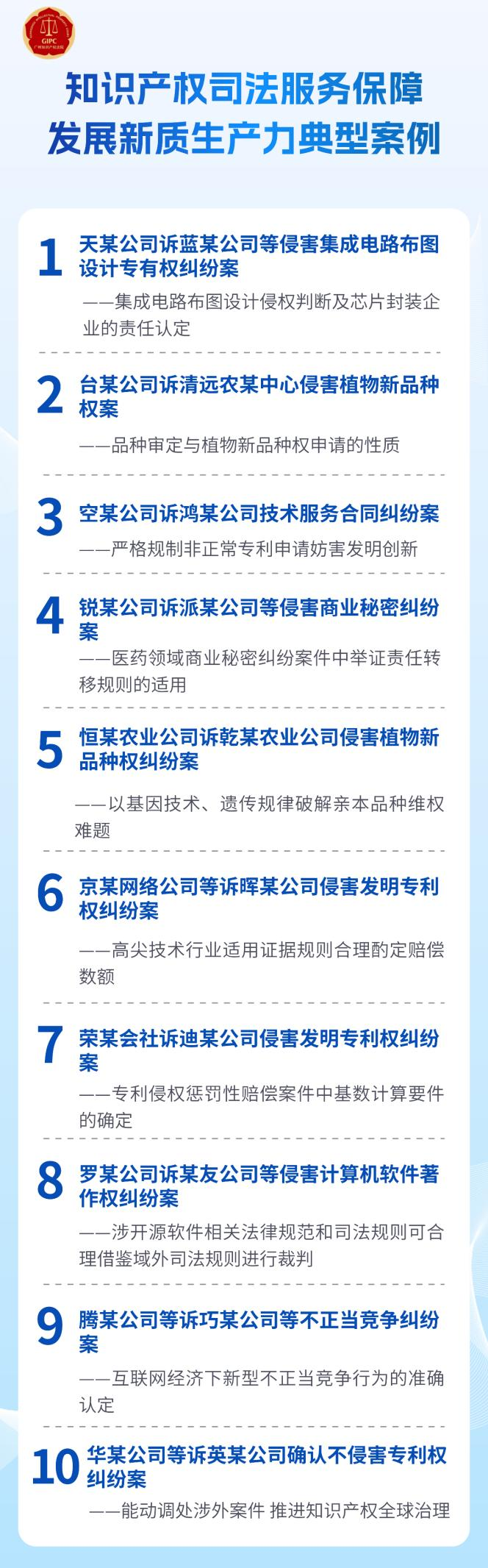 在天某公司诉蓝某公司等侵害集成电路布图设计专有权纠纷案中,先行判决被告停止侵权,明确了侵害集成电路布图设计专有权案件的审理思路。在涉及5G核心技术的京某公司诉晖某公司侵害发明专利权纠纷案中,适用证据披露、举证妨碍等制度,全额支持原告4000万元的赔偿请求。在罗某公司诉某友公司等侵害计算机软件著作权纠纷案中,及时回应开源新业态司法需求,作出全国首份确定开源协议合同性质的判决,填补了国内司法实践的空白。