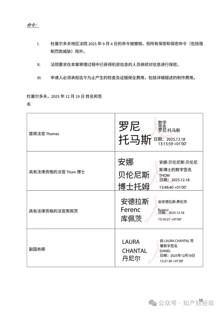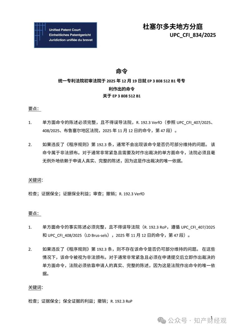 2025年12月19日,UPC杜塞尔多夫地方分院认定其9月4日作出的单方命令违法,正式撤销该命令(案号:UPC_CFI_834/2025)。