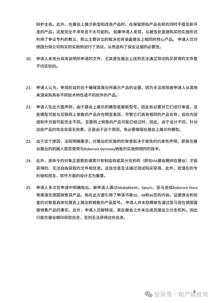 所谓单方命令,是指法院在未通知、未听取对方当事人意见的情况下,应权利人申请直接作出的临时性司法措施,常见类型包括证据保全、现场检查、临时禁令等。在本案中,争议的单方命令系用于在德国柏林举办的IFA展会期间,对石头科技展出的相关产品实施现场检查并进行证据保全。