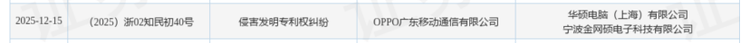 面对华硕的系列诉讼,OPPO向浙江省宁波市中级人民法院提起反诉,指控华硕侵犯其多项中国发明专利,根据天眼查APP显示,案件目前已于12月15日开庭审理。