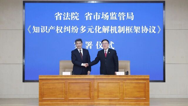 为全面落实“总对总”多元化纠纷解决机制要求,推动知识产权纠纷在源头预防、前端化解、多方协同上取得新突破,4月14日,省法院联合省市场监管局召开全省知识产权纠纷多元化解工作经验交流会,双方共同签署《知识产权纠纷多元化解机制框架协议》,联合发布知识产权多元解纷十大典型案例。省法院副院长吕涛,省市场监管局党组成员、副局长、一级巡视员、省知识产权局副局长于智勇出席会议并讲话。省法院二级高级法官刘义生主持会议。