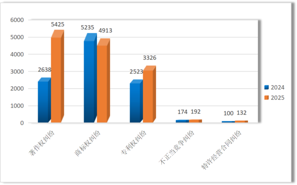 图3 2025年与2024年受理知识产权民事案件数量对比