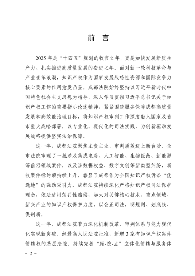 《成都法院2025年知识产权司法保护状况》白皮书